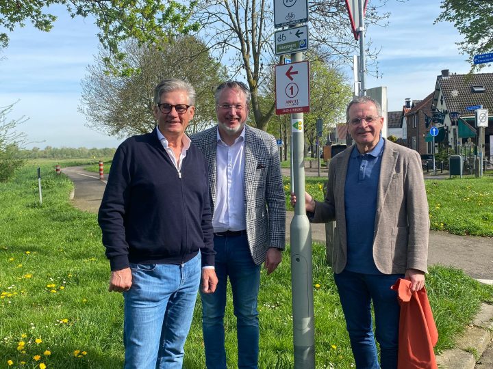 V.l.n.r.: Leo van Vliet, gedeputeerde Stephan Satijn van provincie Limburg en Marc van Rooij van Shimano – foto: Raymond Kerckhoffs