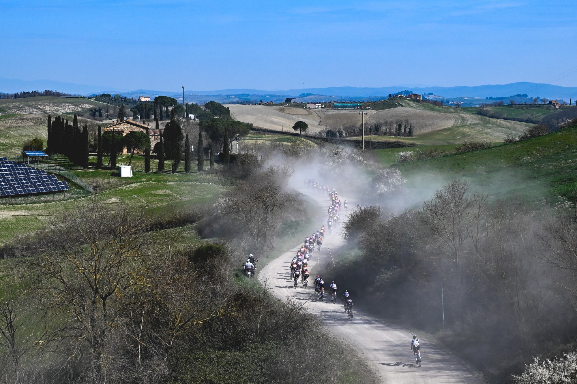 Dat maakt van de San Martino in Grania een ware uitputtingsslag, zowel in de koers als in de fameuze Granfondo Strade Bianche. Tijdens de negende etappe van de Giro 2025 is het de derde van een drieluik gravelstroken die elkaar snel opvolgt, met daarna nog een kleine 35 glooiende kilometers door het Toscaanse landschap. Tijdens de Granfondo is het ook onderdeel van een gelijkaardig drieluik en is het de enige sector met de zwaarste score van vijf sterren.