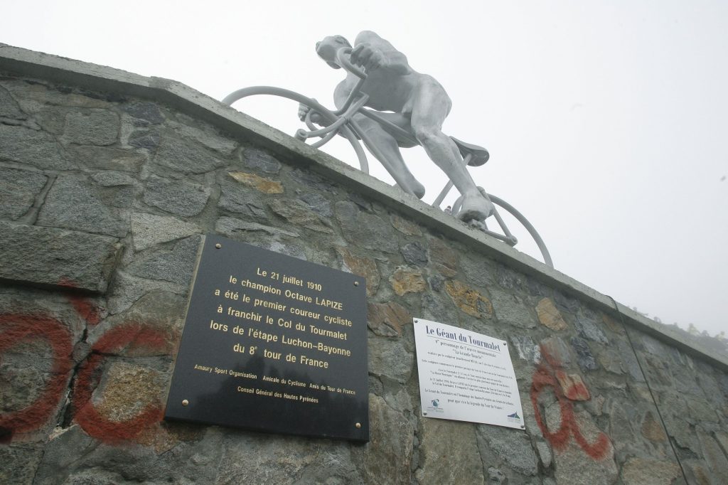 Op de top staat een beeld van Octave Lapize, de eerste coureur die in de Tour de top van de Tourmalet bereikte – foto: Cor Vos