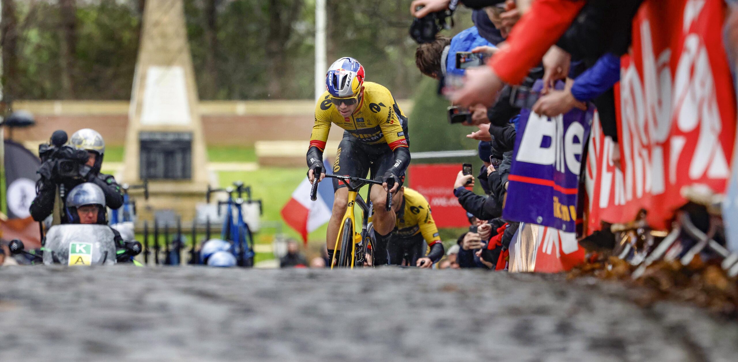Waar de omgeving van Oudenaarde de meeste koersen per vierkante meter van de hele wereld heeft, zul je het Heuvelland vooral kennen van Gent-Wevelgem. Prachtige wedstrijd, die helaas een beetje van zijn kracht wordt ontdaan door een lange, saaie finale na de laatste passage over de heuvels. Natuurlijk, een aantal edities verdient het predikaat legendarisch. Denk aan de editie die in 2015 verreden. Luca Paolini won, maar we blijven ons vooral herinneren hoe renners van de kopgroep de berm in werden geblazen door een ongekende bak wind. Of de editie van tien jaar eerder, toen Nico Mattan op sleeptouw werd genomen door de koersbegeleiding en zo op en over Juan Antonio Flecha ging. Ook de editie van 2023 prijkt op de lijst van memorabele wedstrijden. In een kletsnatte koers reden twee mannen van Jumbo-Visma samen naar de streep. Wout van Aert gunde zijn ploegmaat Christophe Laporte de zege.
