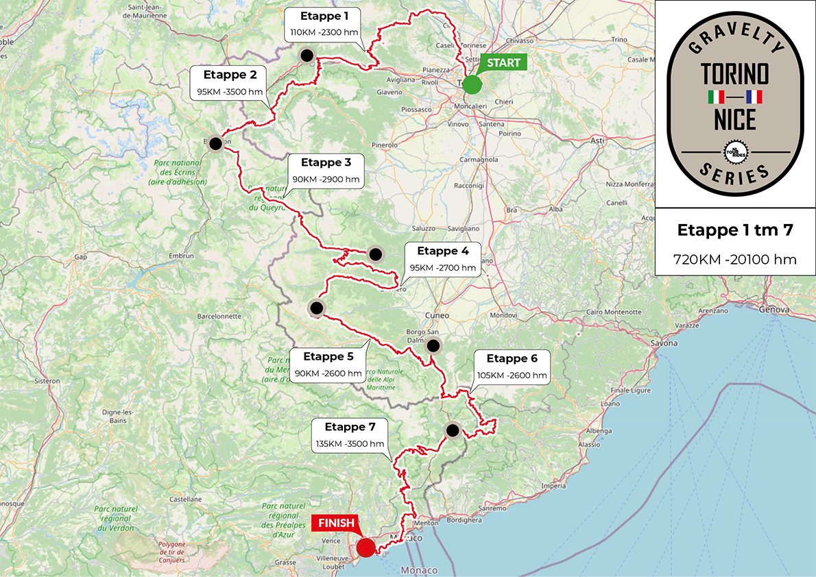 Gravelty Torino-Nice is wel volledig verzorgd. Bij het inschrijfgeld van 2495 euro zitten onder meer acht hotelovernachtingen, ontbijt, lunch en pasta na afloop en technische support en bezwemwagen. Ook de bagagetransport is geregeld. Bij elke inschrijving gaat er 100 euro naar de Smart Shelter Foundation.