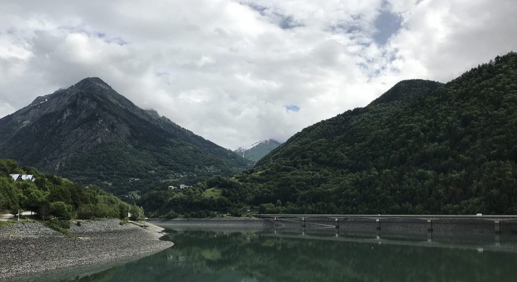 De klim die je zowel nar de Glandon als de Croix de Fer voert, begint eigenlijk al aan de voet van het Lac du Verney: een kunstmatig stuwmeer dat vooral bekend is als de startplaats van de Alpe d’Huez triatlon. Over twee haarspeldbochten klim je de eerste 500 meter, waarna enkele kilometers vals plat volgen langs het meer. Als ik om me heen kijk zie ik in de verte een enkele ruwe bergtop, maar landt mijn blik vooral op met bossen bezaaide bergen. Het geeft geen enkele blijk van de zware klim die me te wachten staat.