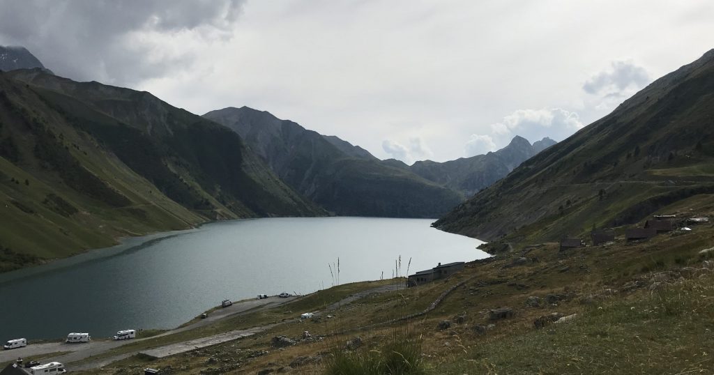 Ik passeer het Lac de Grand Maison, het stuwmeer waar de Eau d’Olle uit voortvloeit met een indrukwekkende dam. Dit is het hoogste reservoir van een hydro-elektrische pompcentrale, waar ook het Lac du Verney toebehoort. De weg vlakt wederom wat af en je krijgt er voor het eerst prachtig uitzicht over de bergen die in tal van losse flanken uiteenlopen in het meer. Hier wordt ook duidelijk dat je op grote hoogte zit, aangezien de begroeiing alsmaar dunner wordt. Als je hier bent, heb je het merendeel van het werk achter de rug en kan je de laatste kilometers van de weg voor je zien liggen.