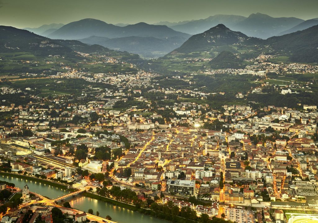 Trento in het avondgloren, gezien vanaf de Monte Bondone – foto: Carlo Baroni