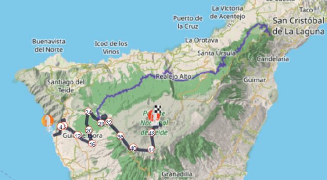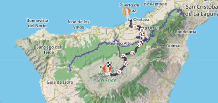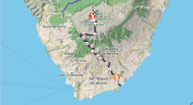 Zit je hier in de buurt in een hotel, dan is deze klim de huisklim. Ook weer lang: 52 kilometer, maar niet zo steil. Een echte loper, want met 4,5 procent gemiddeld is het allemaal wel te doen. Nergens wordt de klim ook echt steil. Neem onderweg een colaatje in restaurant las Estrellas bij Guia de Isora voor je verder gaat. Dat gaat je goed doen.