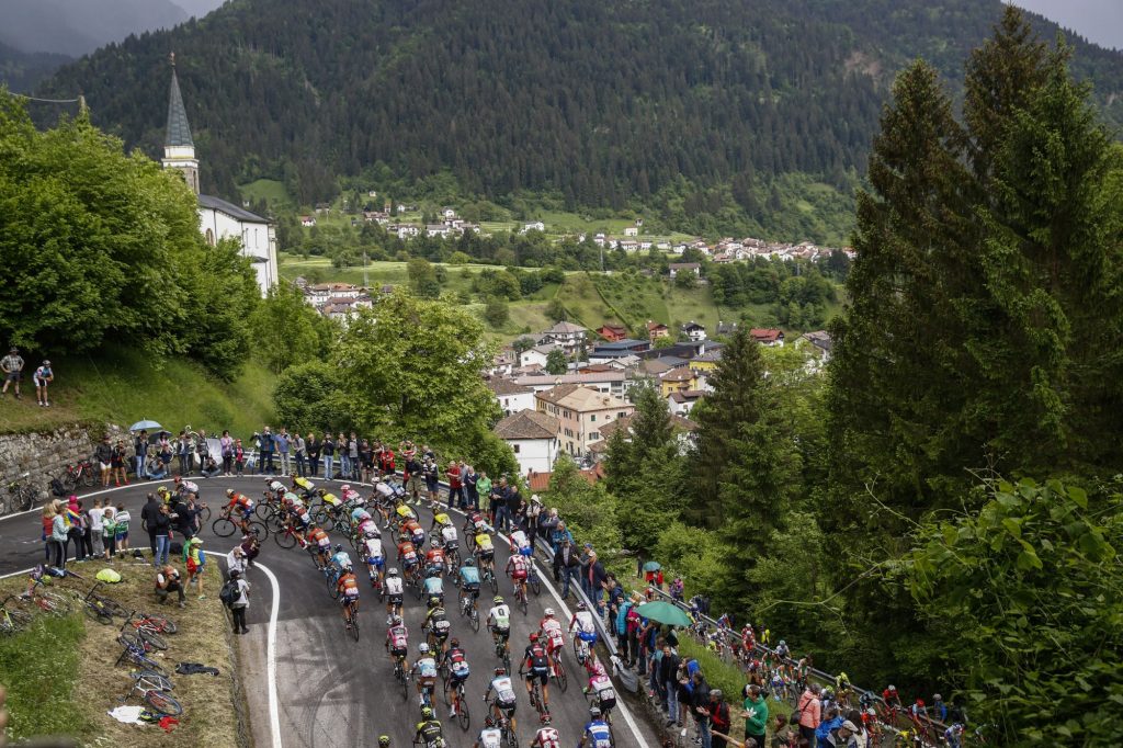 Het Giropeloton tijdens de beklimming van de Zoncolan in 2018 – foto: Cor Vos