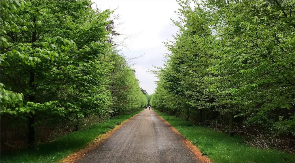 Een paar kilometer is de route nagenoeg vlak, maar vanaf Leersum begint het fietspad weer wat te glooien ter aankondiging van de volgende beklimming. Als ik rechtsaf de Kaapse Bossen insla krijg ik in de vorm van de Ruiterberg de volgende helling onder mijn wielen geschoven. In de achtergrond vervaagt het geluid van de vele auto’s en ik snap gelijk waarom deze bossen populair zijn onder wandelaars en fietsers. Ik hoor enkel mijn wielen suizen en de wind door de bomen waaien. Lastig is de klim allerminst. Ongeveer 700 meter loopt het wegdek aan een procent of 4 omhoog, gevolgd door een uitloper van ruim 500 meter.