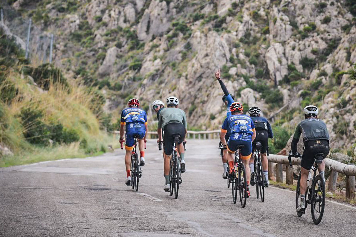 Terwijl op het ene moment nog iedereen vrolijk met elkaar aan het praten is, verstomt het geluid opeens. Een duidelijk signaal dat de eerste klim van de dag – de Col de Femenia – begonnen is. Terwijl we deze beklimming in het donker afleggen, is duidelijk dat we hier te maken hebben met een mooie opwarmer. Niet te steil, niet te lang en het gaat geleidelijk omhoog. Tijdens de beklimming wordt het langzaam licht en nadat ook de mist is opgetrokken, begint het genieten van de omgeving en het schitterende uitzicht op de valleien van de Serra de Tramuntana.