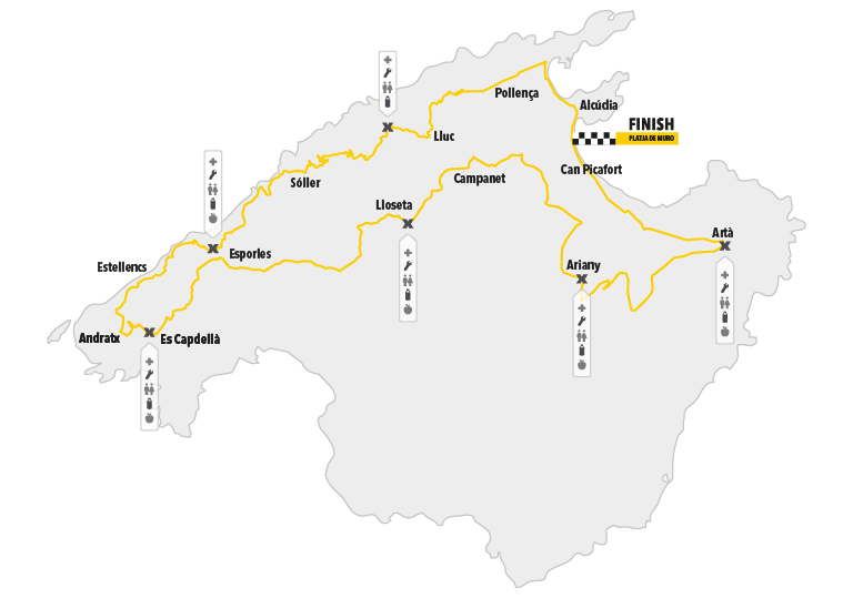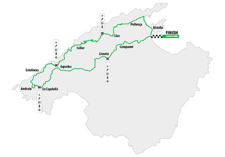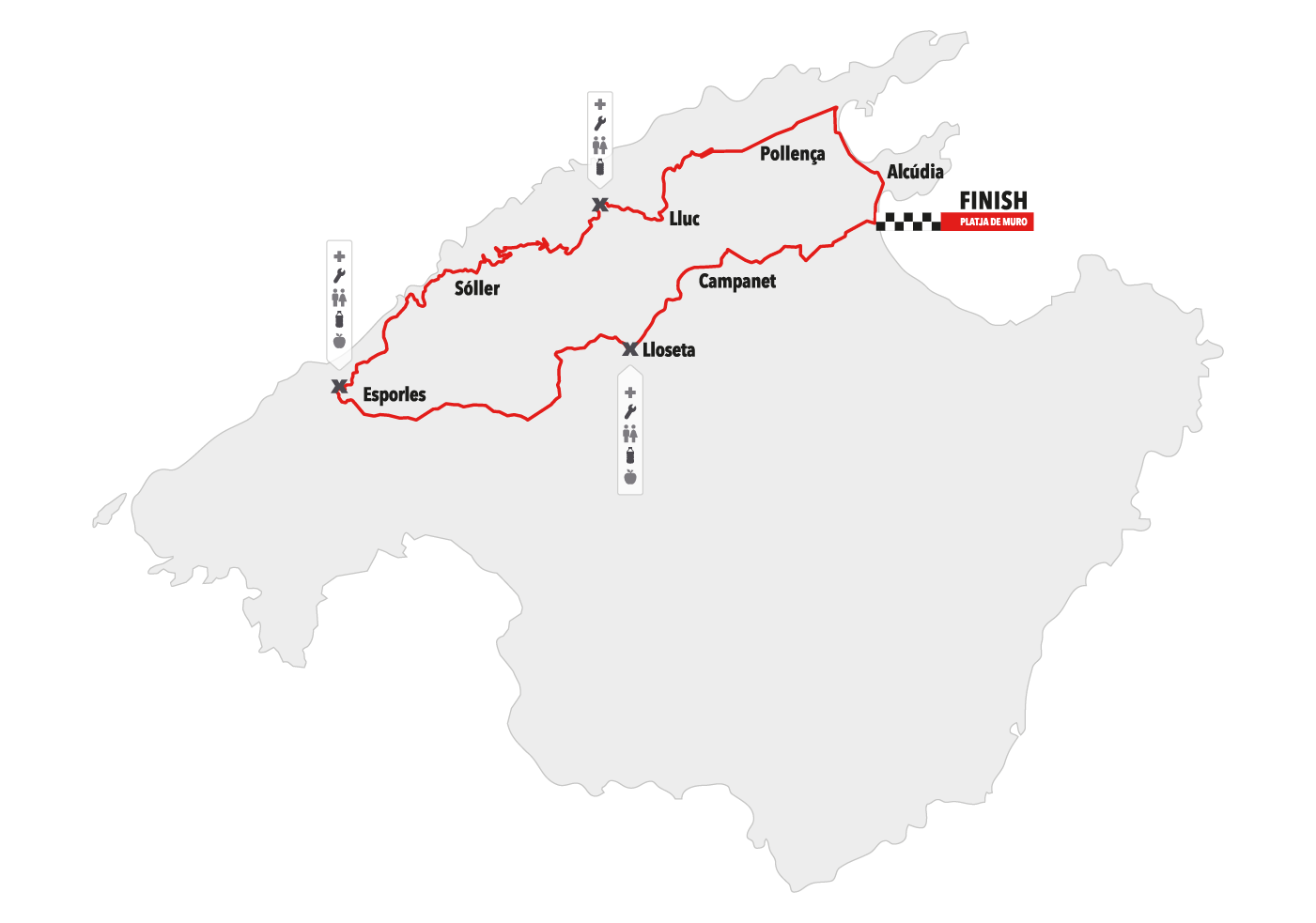 De vroege start drukt de pret allerminst. Vuurspuwers bij de start zorgen voor extra sfeer en een setje armwarmers blijkt onder deze temperaturen voldoende om warm te blijven. Wanneer we nadat het startschot geklonken heeft door de straten van Platja de Muro en Port d’Alcudia noordwaarts rijden, staan de inwoners de eerste kilometers langs de kant van de weg om de deelnemers aan te moedigen.