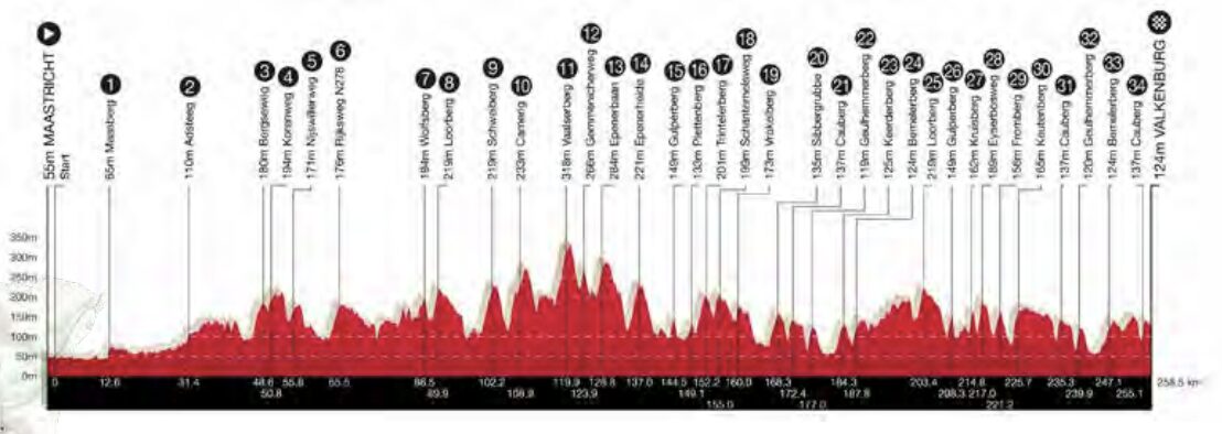 De Amstel Gold Race keert dit jaar weer terug met de bekende Zuid-Limburgse klimmetjes zoals de Gulperberg, Kruisberg en Bemelerberg. De enige wijziging in het parcours dit jaar is dat de Cauberg weer de laatste klim wordt. In plaats van na de Bemelerberg linksaf te slaan naar de finish, duiken de renners nu via de Daalhemmerweg Valkenburg in, waarna ze voor de laatste keer de Cauberg beklimmen. Vanaf de top is het nog slechts 2,5 kilometer naar de finish in Berg en Terblijt.