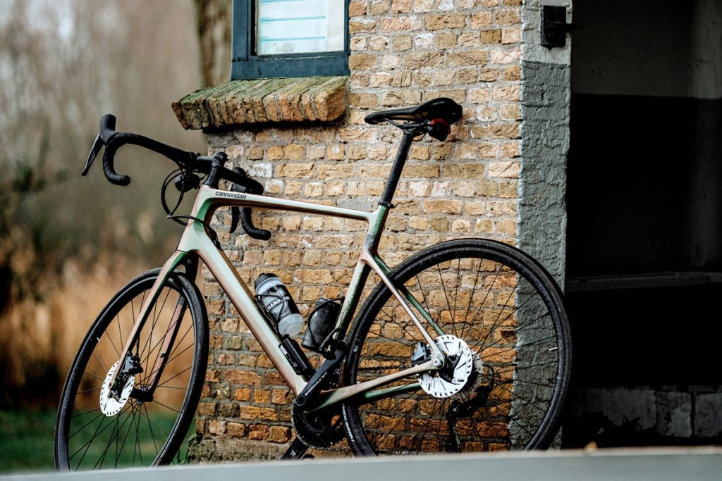 Wat het eerste in het oog springt, is de kleur. De kleurstelling van onze testfiets is een geslaagd samenspel tussen groen en bruin (Cannondale noemt het Beetle Green), waarbij groen de overhand heeft. Smaak blijft iets persoonlijks, maar mij kan deze uitvoering wel bekoren.