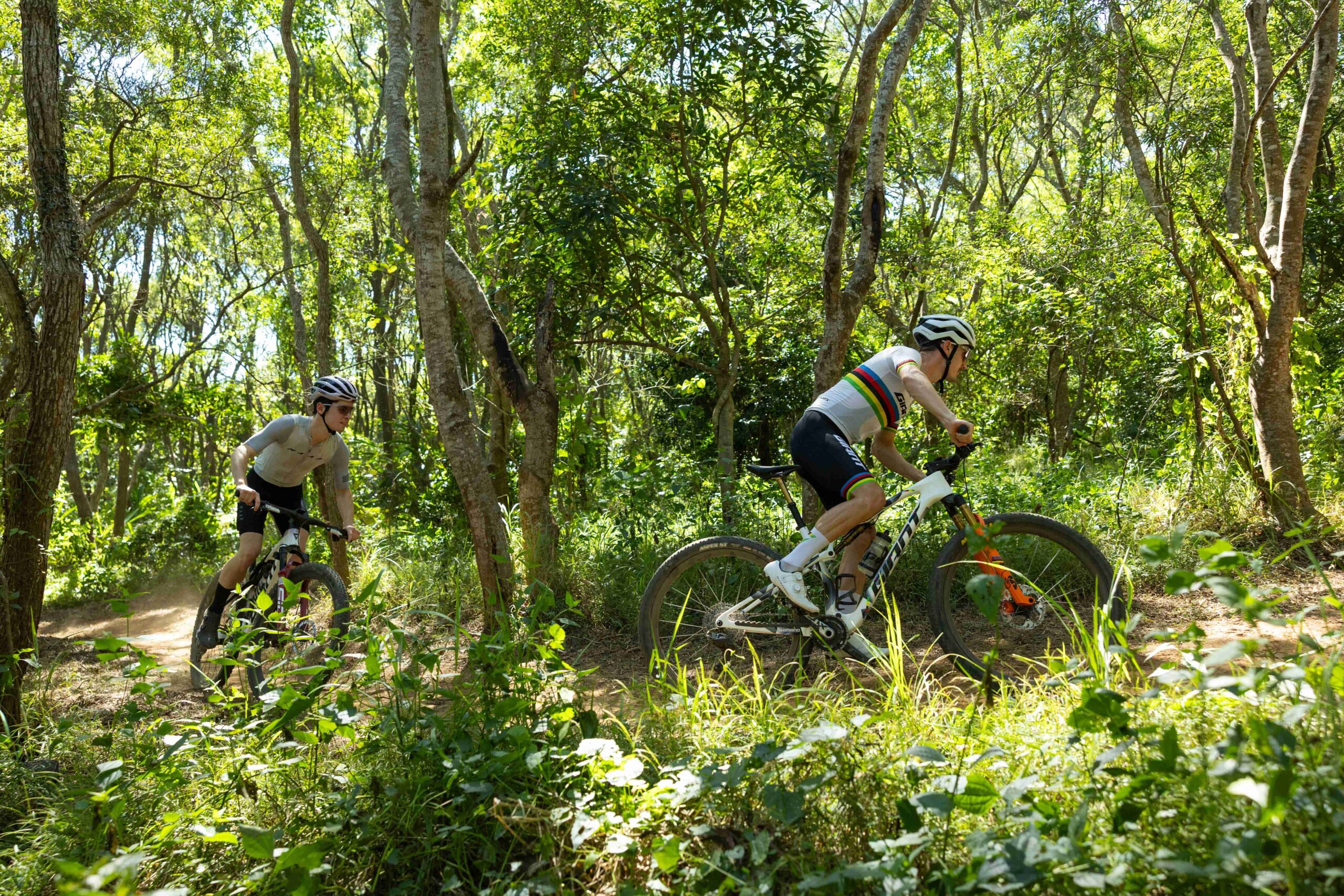 In het wiel van Hatherly over een MTB-parcours crossen is ontzettend leuk én beangstigend tegelijkertijd – foto: Sterling Lorence/Giant