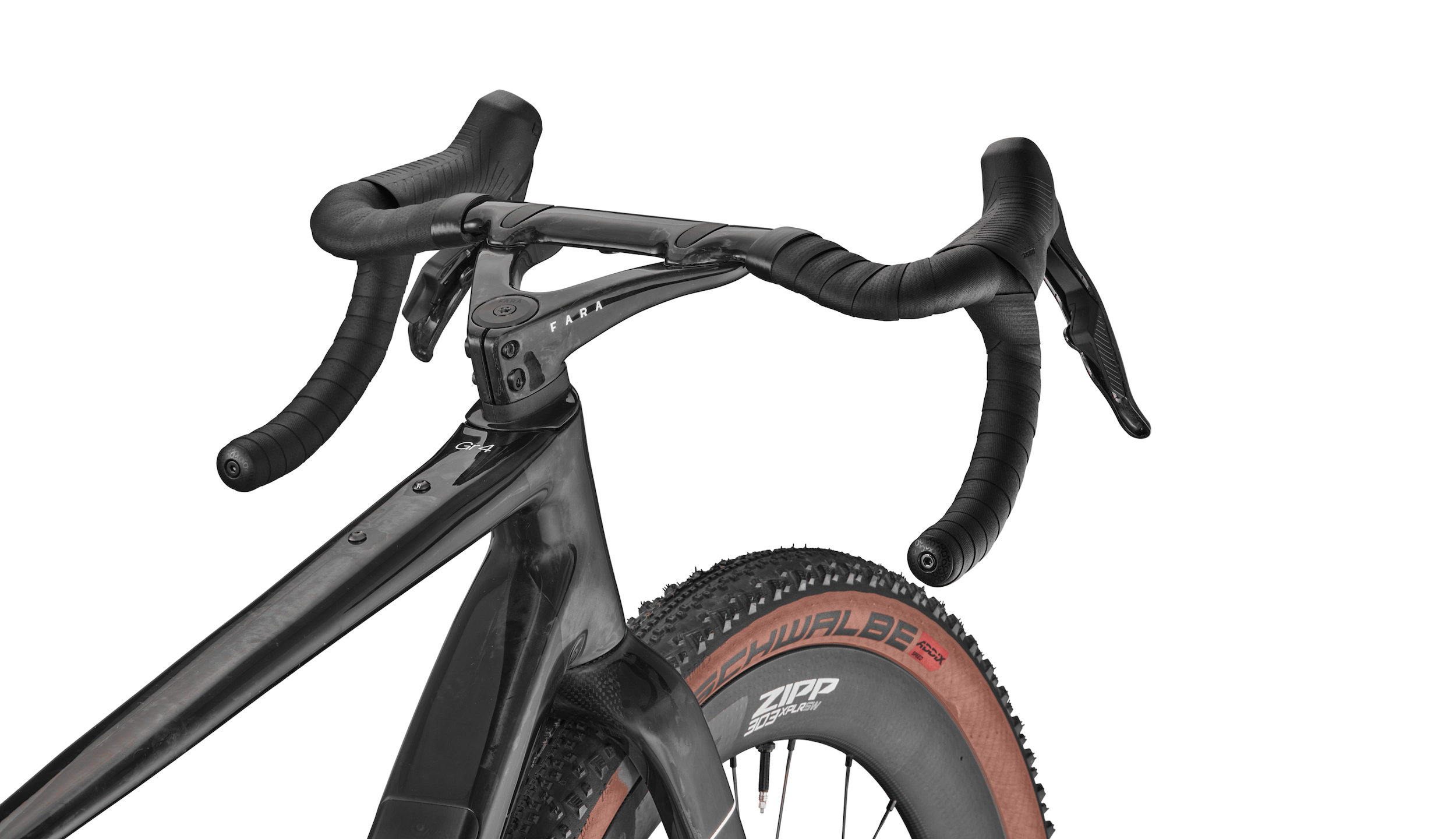 De nieuwe Fara-fiets is lichter en veelzijdiger dan ooit. Dankzij ruimte voor 57 mm banden, een gebalanceerde geometrie en een modulair cockpit-systeem (in diverse maten) vinden renners altijd de ideale combinatie van snelheid, comfort en wendbaarheid. Het frame is voorzien van geïntegreerde opbergruimte, cargo- en spatbordmounts, magnetische bevestigingen voor het bikepacking-systeem en is volledig UDH-compatibel.