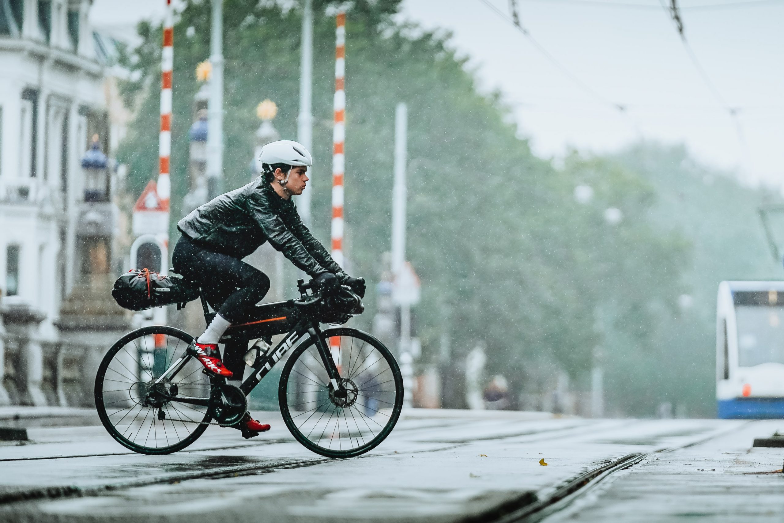 En hoe ga je om met regen? Blijf je plichtsgetrouw je trainingsritten buiten afwerken als het met bakken uit de hemel komt? Of wacht je tot de zon zich even laat zien? In dat laatste geval is waterdichte kleding geen must, terwijl dat wel handig is als je in alle omstandigheden wil blijven fietsen.