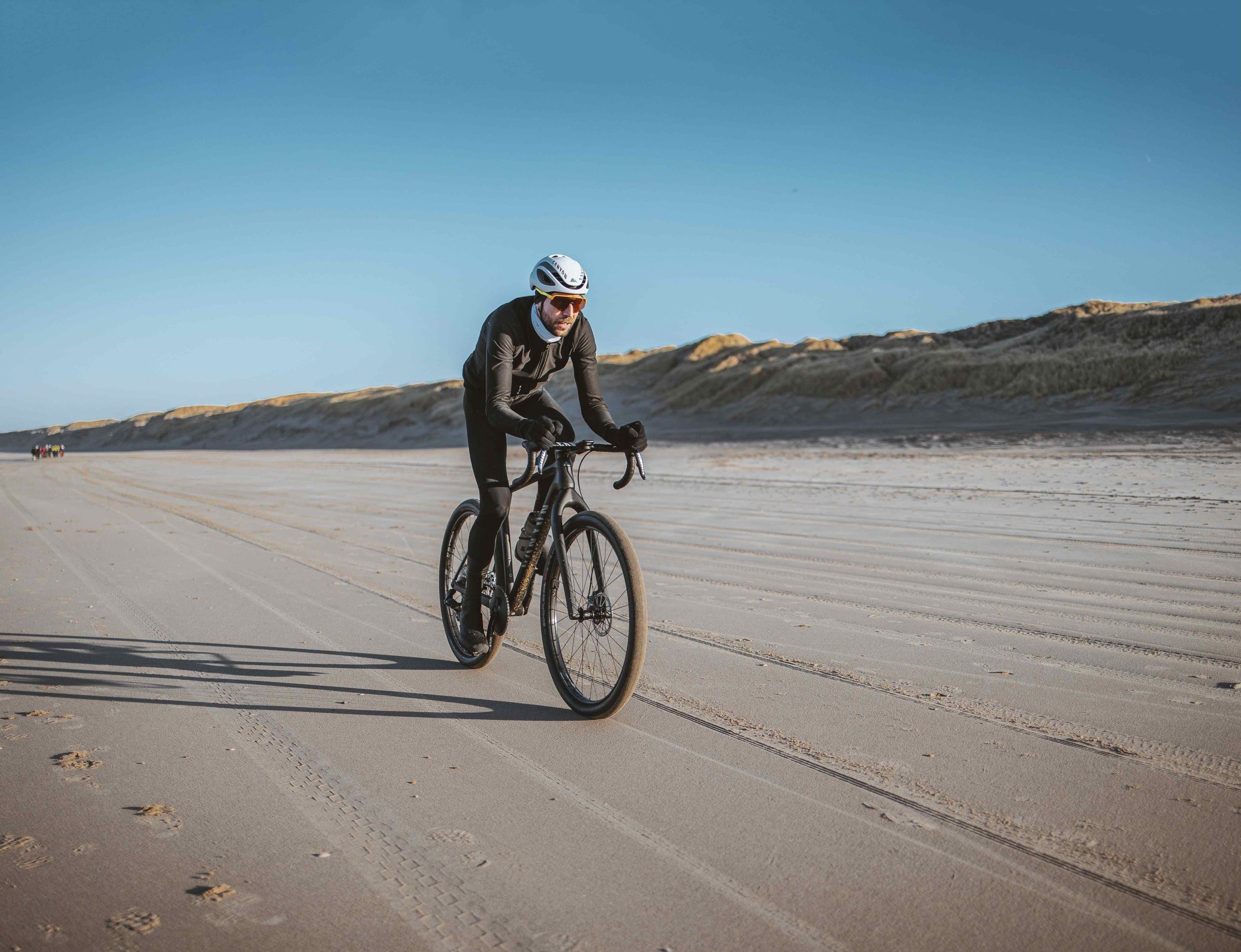 De unieke ondergrond die het overwegend stevig aangestampte zand vormt, vraagt een geheel eigen aanpak wat betreft de bandenkeuze. “Het belangrijkste aan een strandband is dat je een groot volume nodig hebt én geen profiel op de band wil”, legt Bas Leibrand ons uit. Als sponsormanager van Schwalbe staat hij constant in contact met de vele atleten die door het Duitse bandenmerk worden ondersteund.