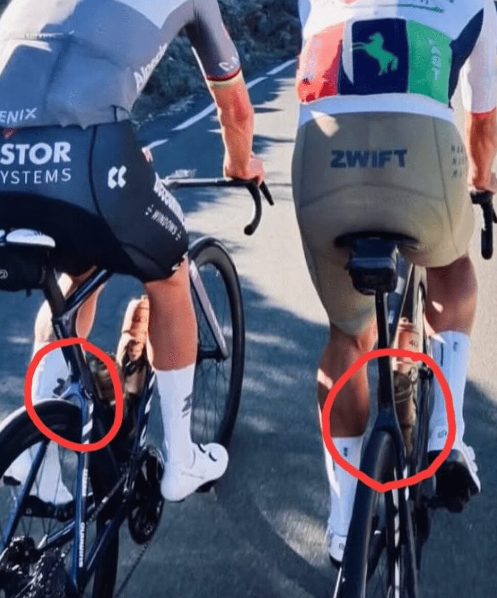Het prototype waar MVDP op traint, heeft echter een stuur dat aan de bovenzijde naar voren loopt, zoals het stuur van Tadej Pogačar’s Colnago Y1RS of van de Bianchi Oltre RC. Bij die twee modellen loopt het stuur ook nog wat omhoog, wat bij de nieuwe fiets van Van der Poel niet zo lijkt te zijn. Of het een variant van de al bestaande PACE bar is of dat het een totaal nieuw stuur is, valt aan de hand van de beelden niet te zeggen.
