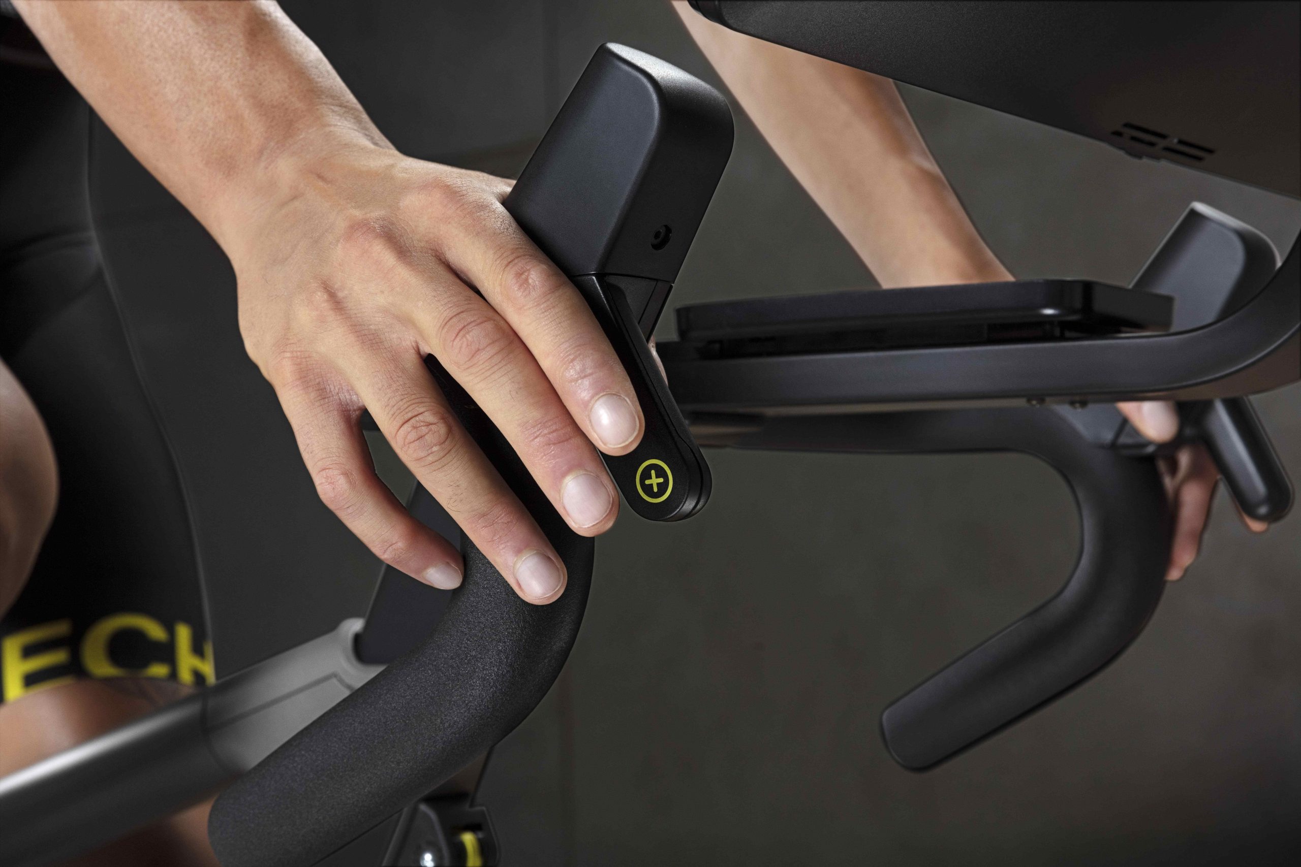 Net als op je racefiets, schakel je op de remgrepen om de intensiteit te bepalen – foto: Technogym