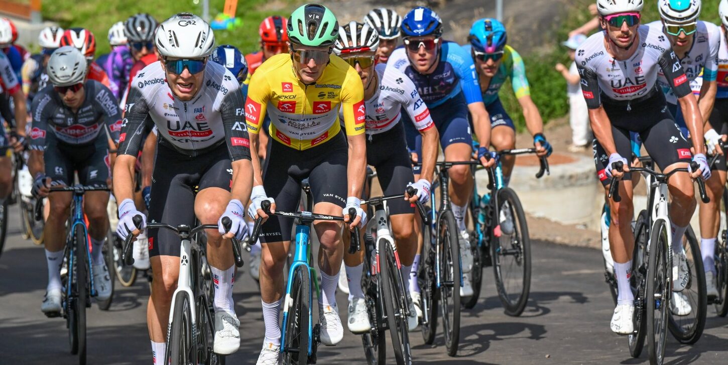 Onder impuls van Visma | Lease a Bike en Israel-Premier Tech waren de leiders in het vlakke slot een vogel voor de kat. Iets voor de vlag van de laatste kilometer was het peloton weer compleet.