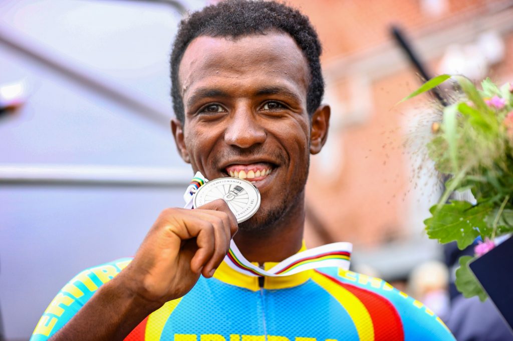 Ghirmay reed tot deze zomer voor het Franse Delko, maar verhuisde in augustus naar Intermarché-Wanty-Gobert. Sindsdien won hij al een Franse semiklassieker (hij klopte daarin onder meer Quintana en Pinot in een sprint met vijf) en pakte een paar mooie ereplaatsen. Vandaag dikte hij zijn erelijst dus aan met WK-zilver.