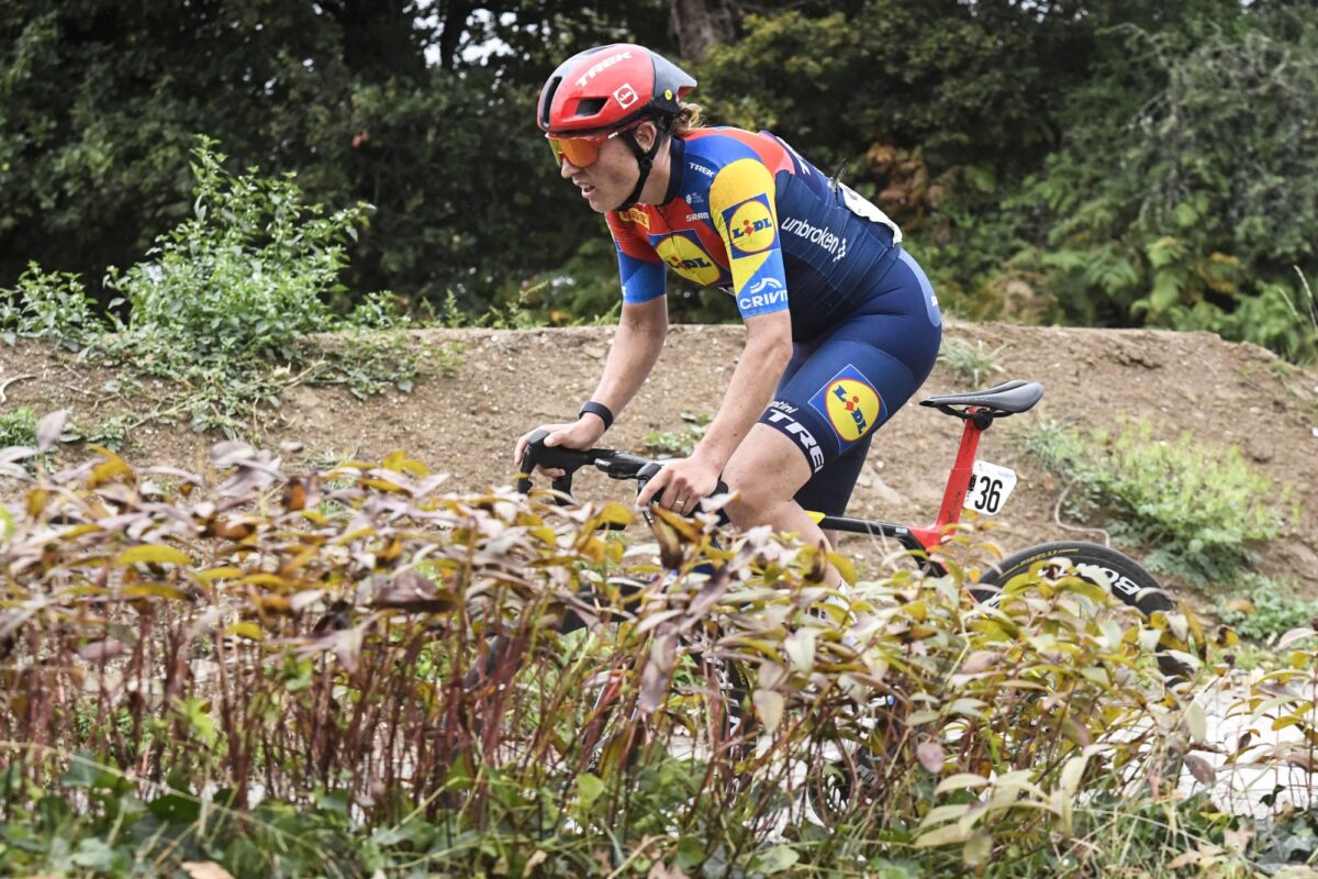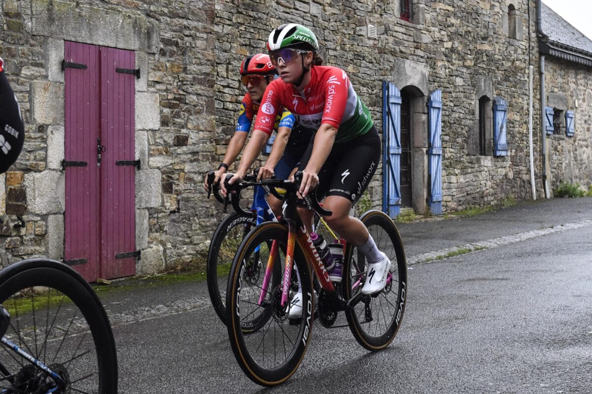Op de voorlaatste keer Côte du Lezot gooide Femke de Vries (Visma | Lease a Bike) dan maar de knuppel in het hoenderhok. De Nederlandse sloeg een mooie kloof, maar door een versnelling van Longo Borghini kwam het (sterk uitgedunde) peloton nog voor de top wel weer terug. Er volgden gelijk nieuwe uitvalspogingen. Ook De Vries probeerde het nogmaals, en nu kreeg ze twee rensters mee: Franziska Koch en Elonora Camilla Gasparrini. Achter hen viel het eventjes stil. Van der Breggen zette zich vervolgens op kop, maar het gat was al geslagen.