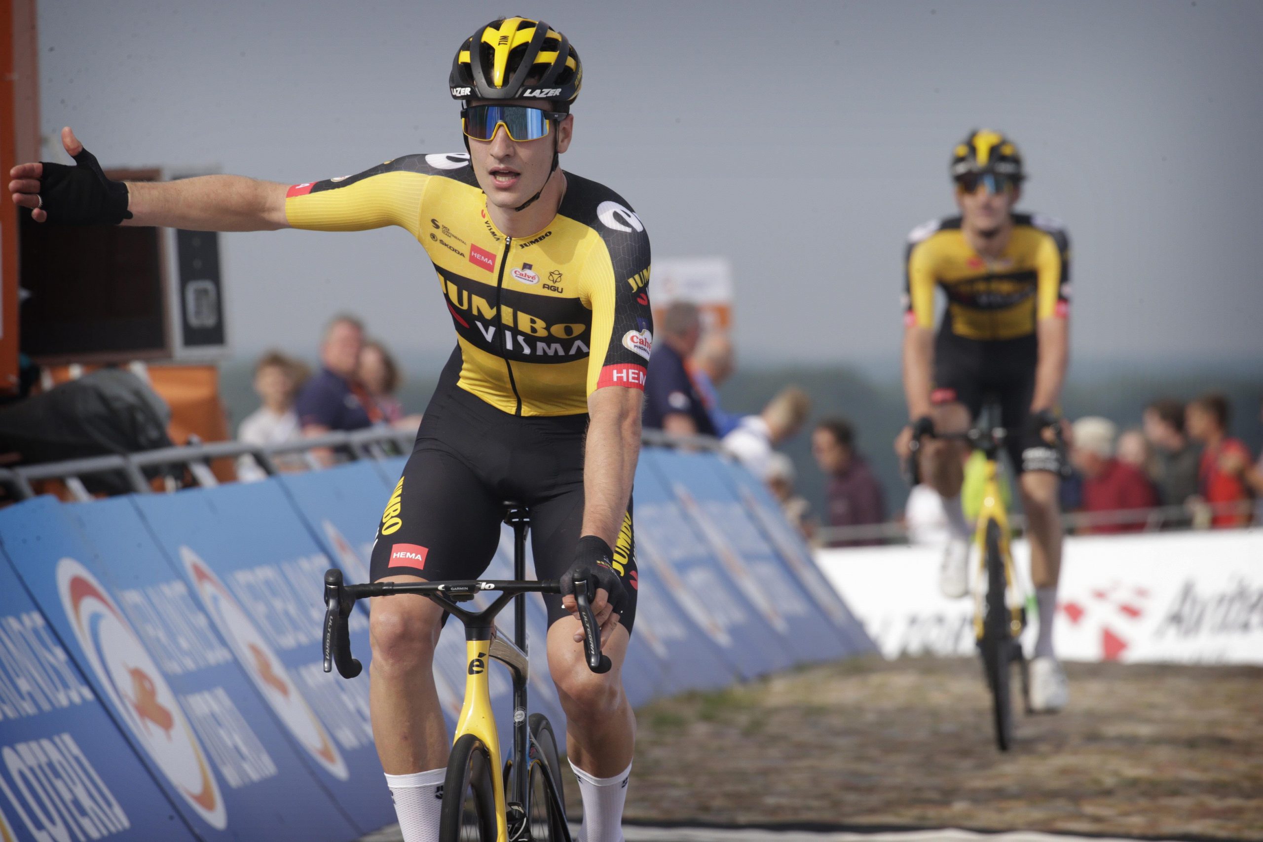 Tim: “Nou, er werd volgens mij achter mij ook nog super hard gereden. Toch? (Mick knikt instemmend, red.) Toen ik hier dat ding (de VAM-berg, red.) opreed en mijn broer aan zag komen, dacht ik: ‘Deze keer ff niet, vriend.’ Ik ben volle bak doorgereden. Toen ik de kasseien op reed naar de streep toe, was ik nog niet helemaal zeker. Zelfs na de streep niet. Ik kon het gewoon niet geloven. Er werd écht hard gereden. Ik zag de nummers op mijn Garmin staan, ik ging zo hard. Maar ik bleef ze achter me zien.”