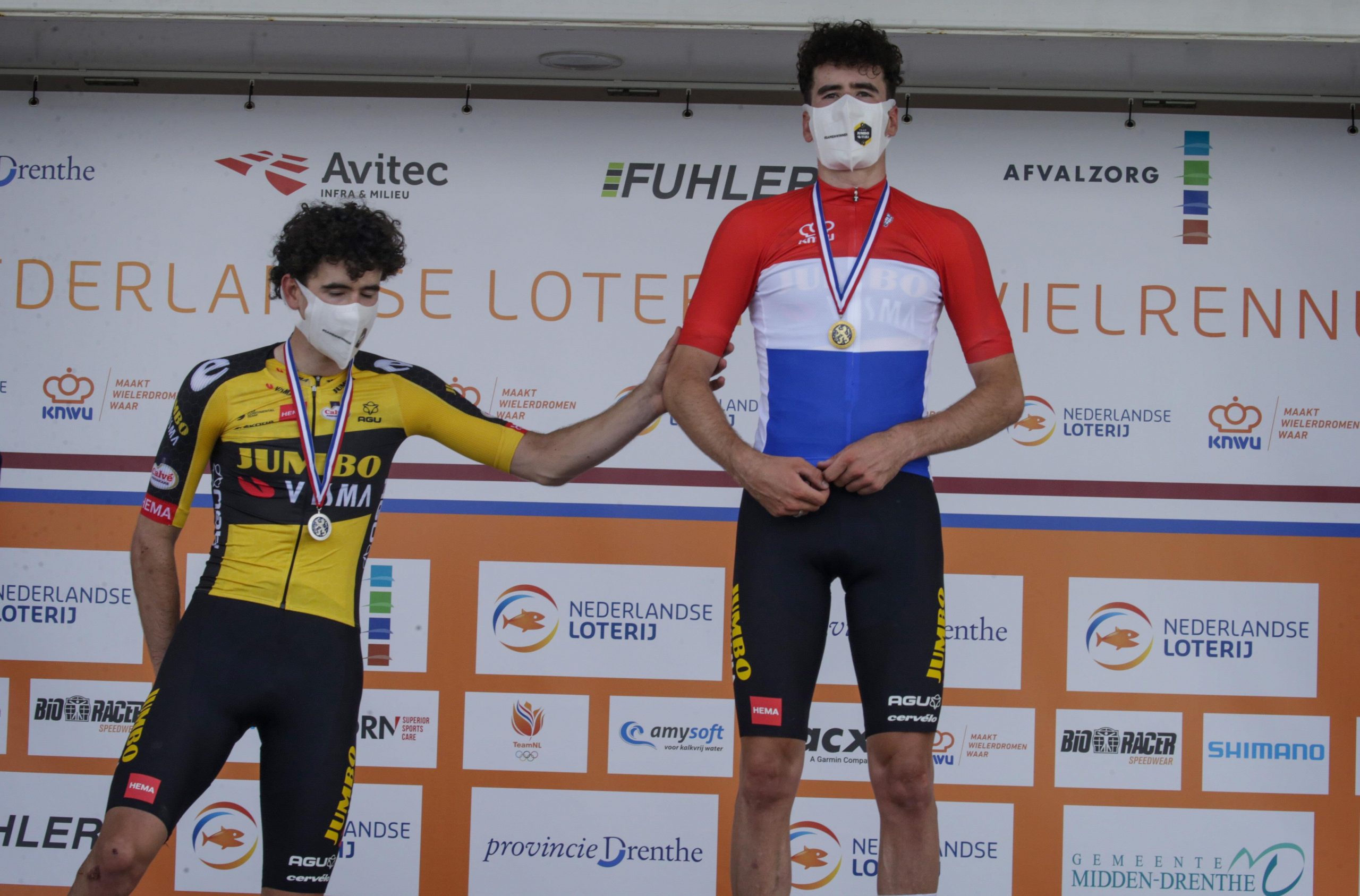 Interview Jumbo-Visma Development was aan hun stand verplicht het NK voor beloften te winnen. Dat deed de opleidingsploeg afgetekend. Hoofdrolspelers in dit scenario: Mick en Tim van Dijke, Zeeuwse tweelingbroers uit Colijnsplaat. Mick won woensdag het NK tijdrijden, Tim zaterdag het NK op de weg. In beide gevallen was de tweelingbroer tweede. WielerFlits zocht de amicale mannen op na de finish.