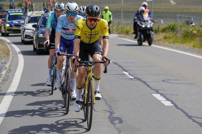 Bij Van Wilder was het wel op hangen en wurgen. Op zo’n drie kilometer van het einde moest de Belg passen, net voor een aanval van… Lipowitz. Enkel Carapaz en Rodríguez konden de verrassend sterke Duitser volgen. Ondertussen moest Ayuso het tweetal Vlasov en Mas laten gaan. In de verte zag hij Carapaz op 2,2 kilometer van de finish wegpoefen bij Lipowitz en Rodríguez. Die laatste bleef vol doorrijden, want als nummer vier van het klassement – op elf seconden van Ayuso – maakte hij grote kans om het geel over te nemen. Hij moest dan wel Vlasov voorblijven, die één seconden voor hem stond.