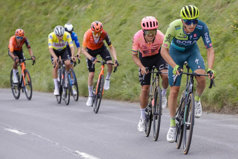 De dagzege zou naar Carapaz gaan, maar het was wel nipt. In de laatste honderd meter vertrok Lipowitz namelijk uit het wiel van Rodríguez en de verrassend sterke Duitser kwam heel snel dichterbij. Hij deed zijn inspanning echter net te laat, waardoor Carapaz de zege binnenharkte. Wel werd Lipowitz tweede. Dat was tien tellen voor Rodríguez, die op zijn beurt Mas en Vlasov vier seconden voorbleef. Zo greep BORA-hansgrohe naast zowel de ritzege als het geel.