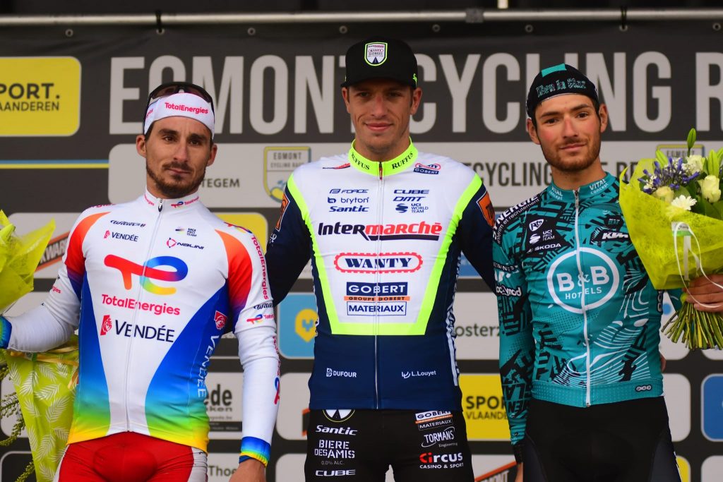 De Egmont Cycling Race is gewonnen door Danny van Poppel. De Nederlander van Intermarche-Wanty-Gobert was in een kletsnat Zottegem de snelste sprinter van een uitgedund peloton. Niccolò Bonifazio (Team TotalEnergies) finishte als tweede.