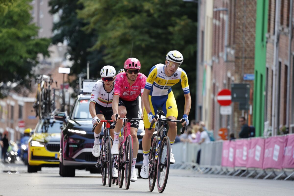 Dat was niet genoeg om stand te houden. Het peloton – met ook nog sprinters als Kooij en Tim Merlier – keerde voor de laatste keer Keizersberg alweer terug. Op die klim kon niemand het verschil maken, maar richting de Wijnpers sloegen Lorenzo Milesi, Paul Magnier en Jasper Stuyven wel een gaatje. Net voor de klim kwam ook Thibau Nys, Valentin Madouas en Stan Dewulf nog aansluiten, maar het peloton zat ook nog steeds niet ver. Alles was dus nog mogelijk.