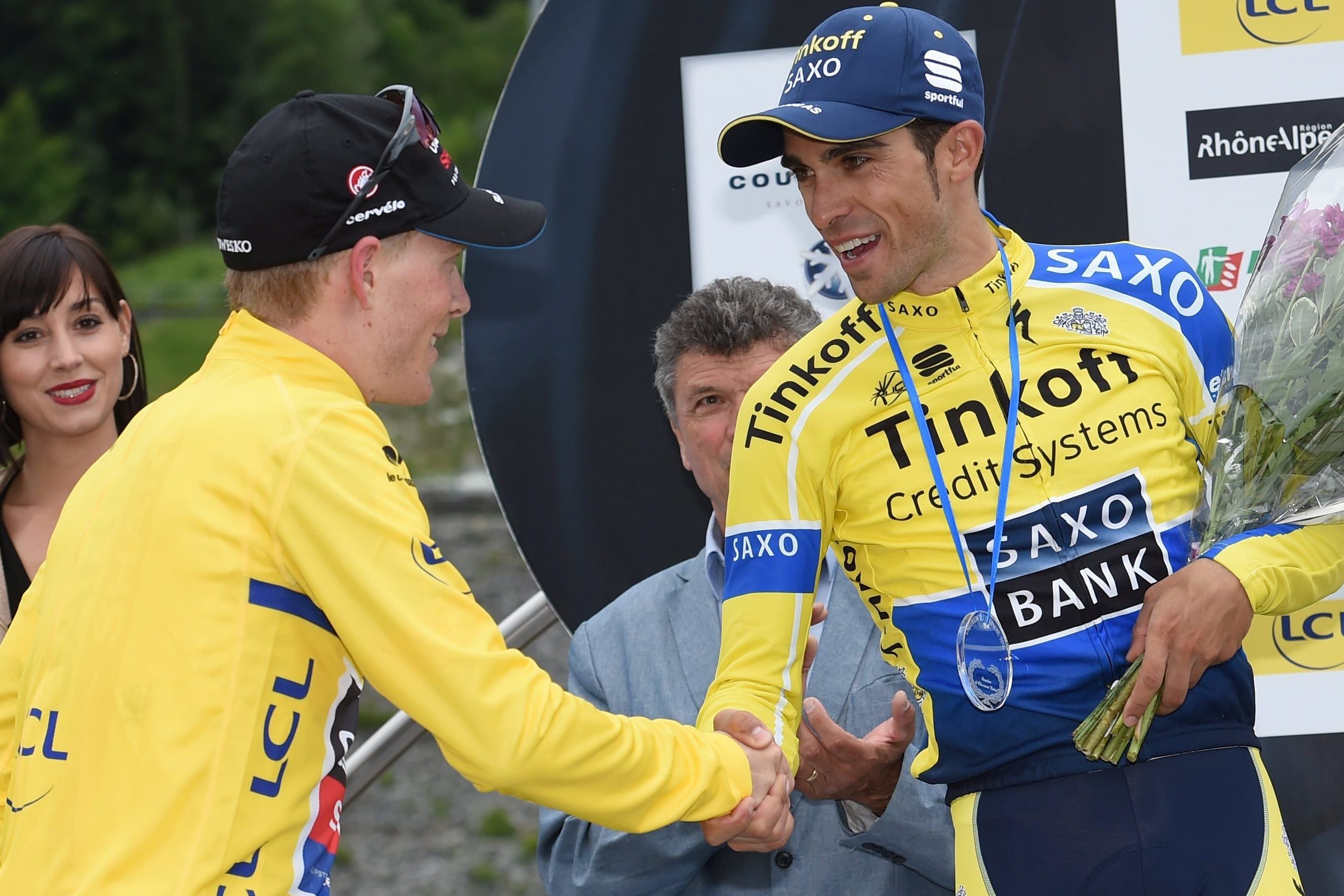 Contador feliciteert Talansky – foto: Cor Vos