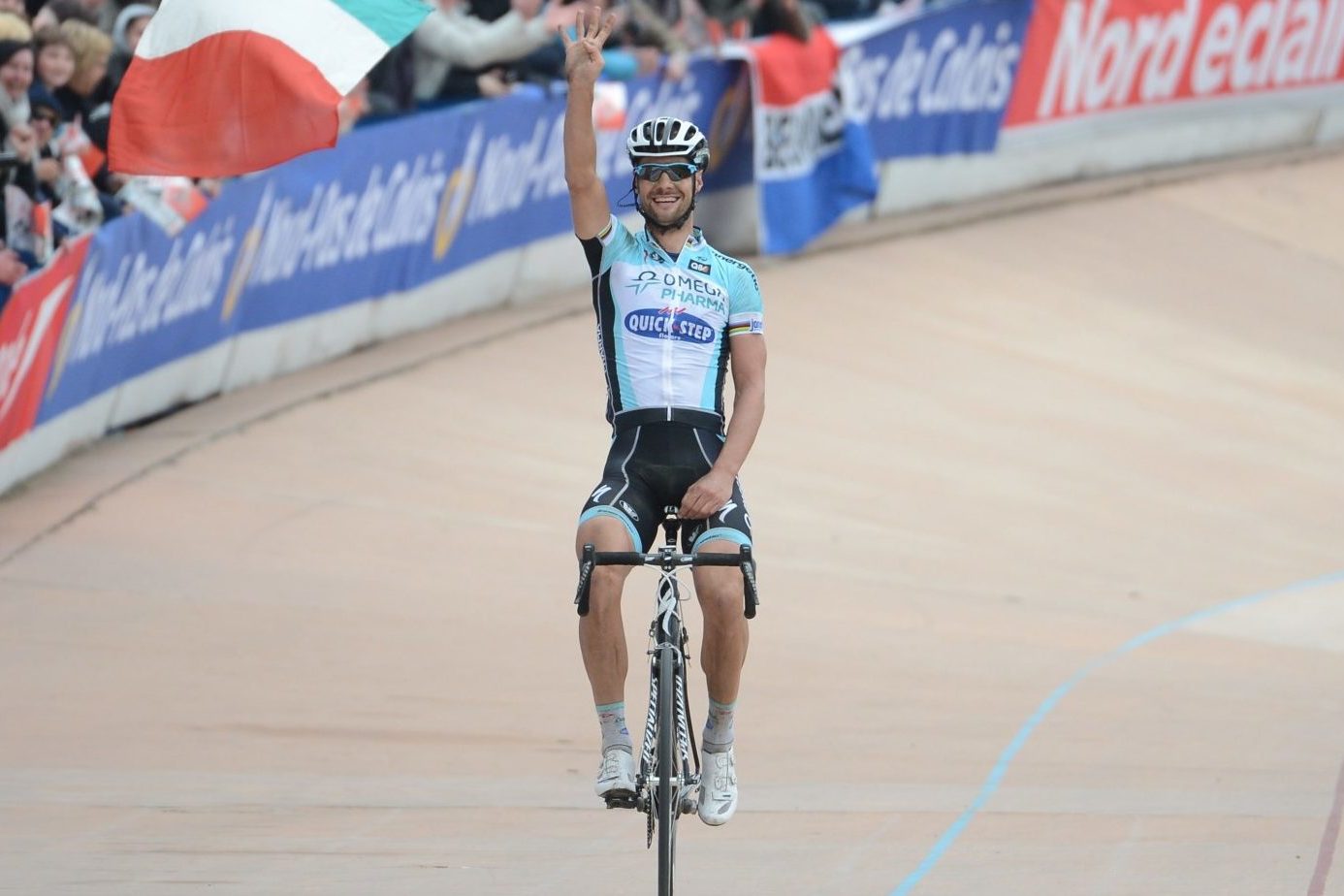 Er was in 2012 niks te doen aan Tom Boonen. De kopman van Omega Pharma-Quick Step won dat jaar niet alleen de E3 Harelbeke, Gent-Wevelgem, Ronde van Vlaanderen, maar ook Parijs-Roubaix. Boonen liet op 54 kilometer van de meet ploeggenoot Niki Terpstra achter, met wie hij was weggereden uit een groepje met ook Alessandro Ballan en Filippo Pozzato. Daarna begon Tornado Tom aan een ongekende solo. Met meer dan anderhalve minuut voorsprong op Sebastién Turgot en Ballan mocht Boonen voor de vierde en laatste keer het zegegebaar maken in Roubaix.