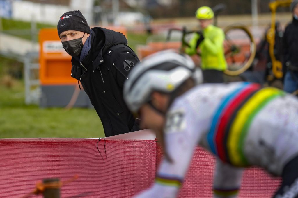 Sven Nys coacht Lucinda Brand tijdens het NK veldrijden – foto: Cor Vos