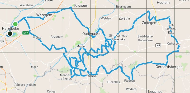 Starten en finishen doen we naar goede gewoonte in Harelbeke, het epicentrum van de E3 Saxo Classic. Daarna volgt een lange lus richting het oosten, waarbij de renners nog meer dorpen die wielrennen ademen, zoals Waregem, Wortegem-Petegem, Oudenaarde, Zottegem, Geraardsbergen (zonder Muur) en Ronse, doorkruisen. Desondanks zijn deze eerste honderd kilometer van de wedstrijd naar goede gewoonte relatief vlak. Enkel op de Katteberg zal het, na 30 kilometer, even klimmen zijn.