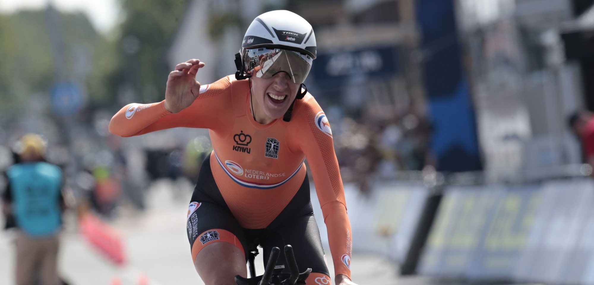 Het antwoord op die vraag blijkt uit het podium. Want er kwam gewoon weer pijn door hard te trappen. Oerend hard snelde ze door oneindig laagland, met een vierde achtereenvolgende Europese titel als passende beloning. Een veelzeggende tekst plaatste Van Dijk na afloop van de tijdrit op Instagram: “The harder the struggle, the sweeter the victory”.