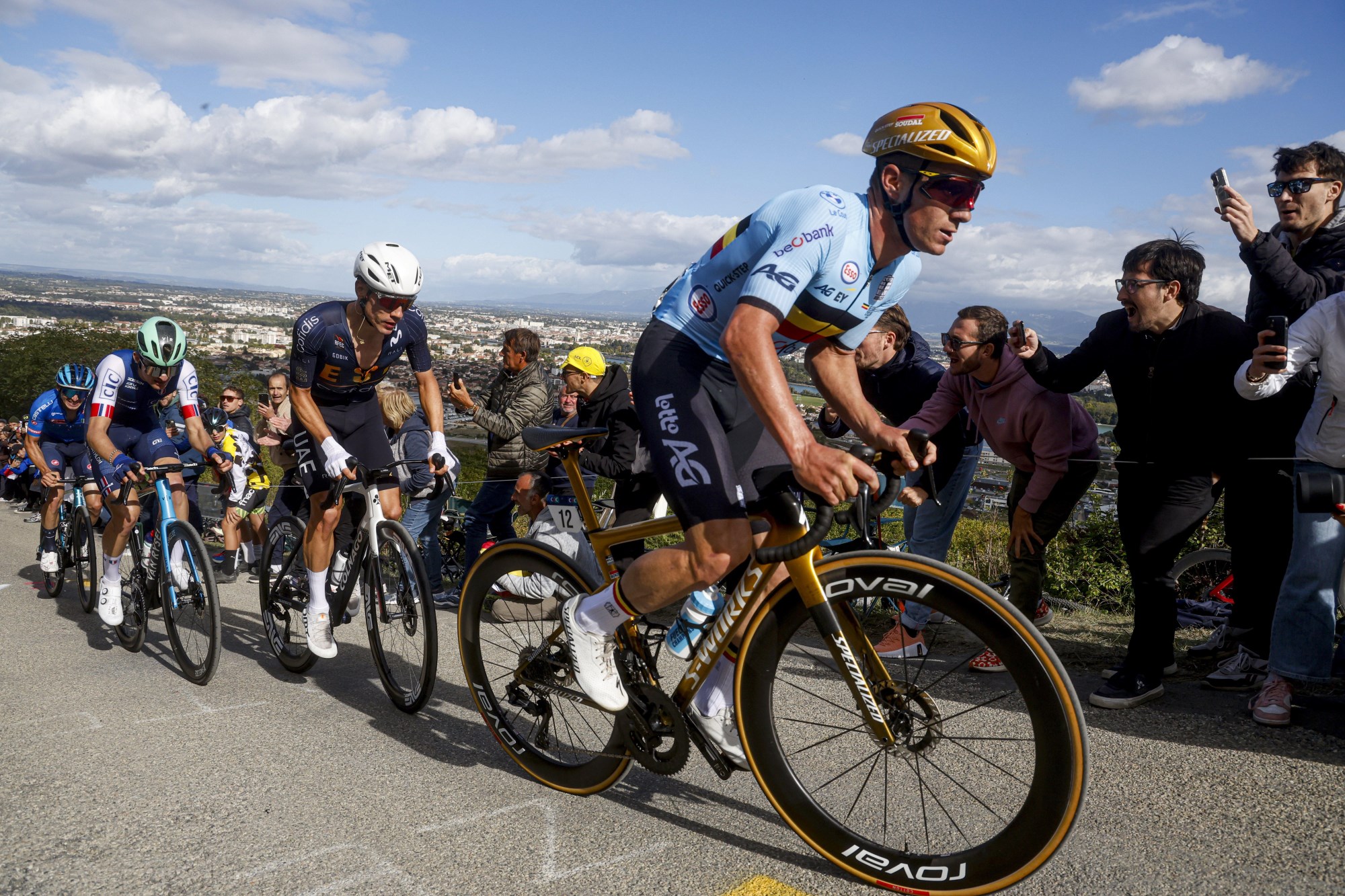 België bepaalde het tempo met Vervaeke, Steff Cras en Tiesj Benoot tot de laatste keer Saint-Romain-de-Lerps Saint-Romain-de-Lerps (7,1 km à 7%). Maar op 76 kilometer van de finish was het genoeg voor Pogačar: de kersverse wereldkampioen demarreerde zes kilometer onder de top en schudde iedereen af, behalve Evenepoel. De Belg kon heel even mee, maar parkeerde uiteindelijk toch, met nog vijf kilometer tot de top.