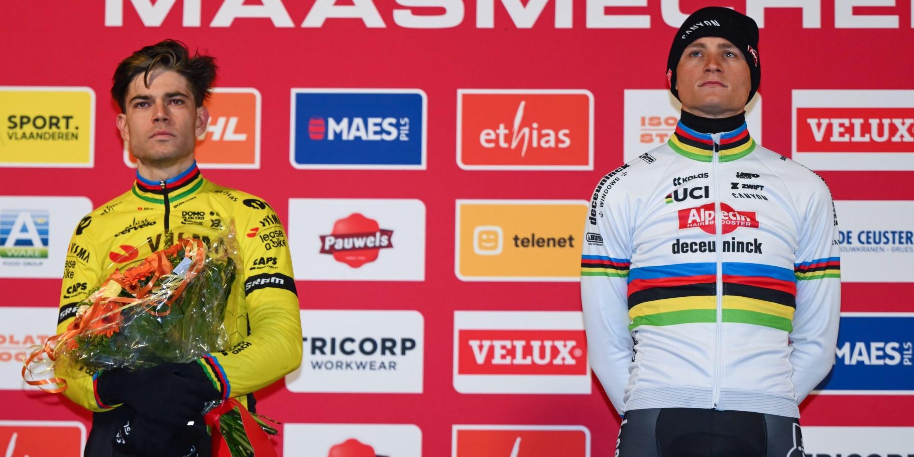 Van der Poel won de laatste confrontatie met Van Aert in Maasmechelen – foto: Cor Vos