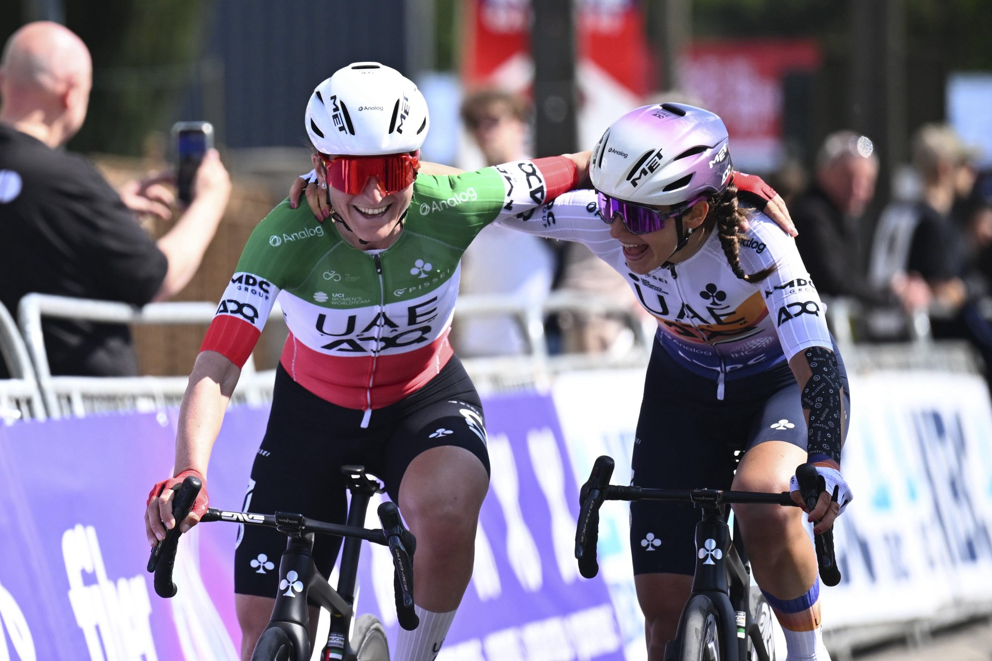 “Ik wist dat zij heel diep moesten gaan om me dan nog terug te pakken”, vertelde de renster die na een korte afwezigheid na een val in de Ronde van Vlaanderen terugkeerde in het peloton. “Het was een echt mooie koers vandaag, een beetje kasseien en een beetje klimmen en ik vind dit leuk”, sloot de Italiaanse kampioene glimlachend af in haar beste Nederlands.