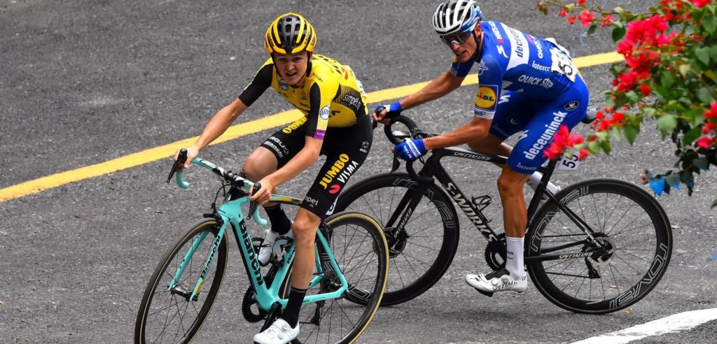 Zo zagen we Astana, EF Education First en Deceuninck-Quick-Step op kop rijden van het peloton, maar eenmaal op de slotklim was het woord aan de klimmers. Op ruim twee kilometer van de top zagen we een versnelling van Rémi Cavagna. De Franse allrounder van Deceuninck-Quick-Step – ritwinnaar in de voorbije Vuelta a España – offerde zich op voor zijn kopman Enric Mas, al reed de 24-jarige hardrijder wel lange tijd vooruit, zij het met een beperkte voorsprong.