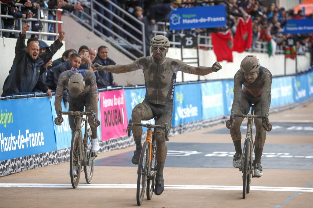 “Mijn benen voelden opnieuw beter aan. Toen we daarna Moscon terugpakten en we Carrefour de l’Arbre overleefden, wist ik dat ik voor de overwinning reed. Maar ik was in de slotfase met twee jongens op pad die al massasprints hebben gewonnen, dus vond ik dat ik voor de aanval moest kiezen. Ik heb het twee keer geprobeerd, zonder succes. Dan maar sprinten op de Velodrome. Ik timede goed, maar in de laatste vijftig meter kampte ik met krampen. Colbrelli kwam er nog over.”