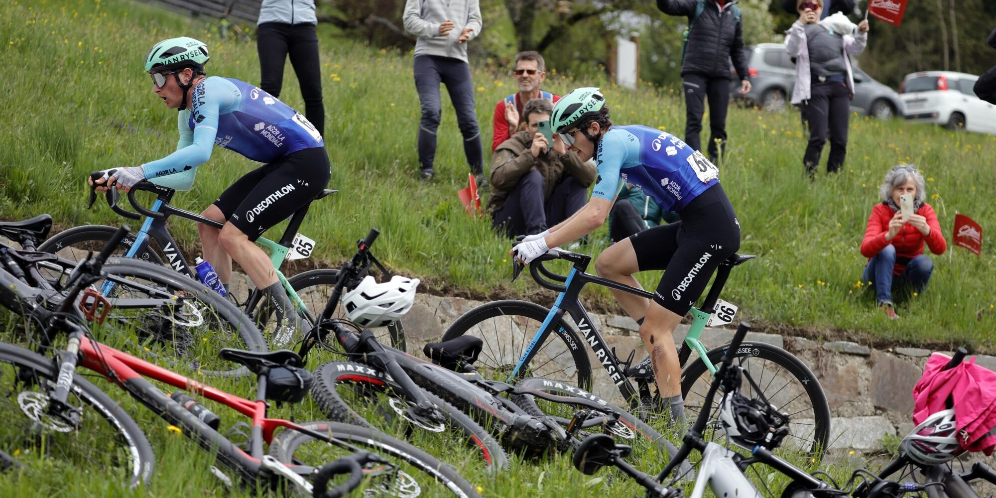 Seixas in het wiel van Nicolas Prodhomme tijdens de Tour of the Alps – foto: Fotopersburo Cor Vos