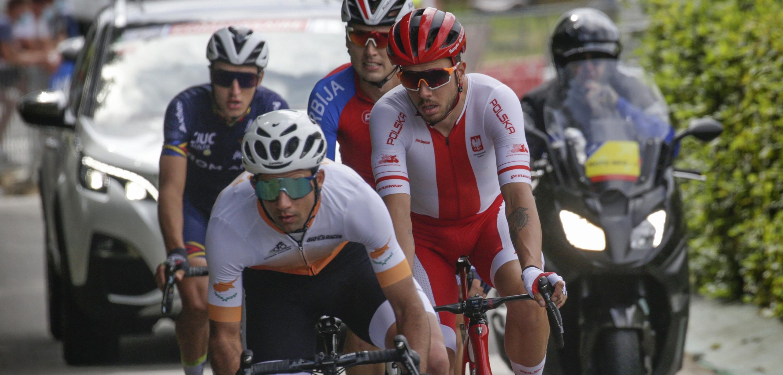 Rond het middaguur begon het peloton met elite-mannen aan de Europese wegwedstrijd over 177,4 kilometer (13x 13,65 km), waarin het golvende parcours voor meer dan 2.500 hoogtemeters zorgde. Enkele renners die wèl op de deelnemerslijst stonden, moesten de titelstrijd links laten liggen. Zo bleef de Roemeen Eduard Grosu noodgedwongen aan de kant door een positieve Covid-19-test in zijn ploeg. Ook Patrick Gamper en Jean-Pierre Drucker startten niet.