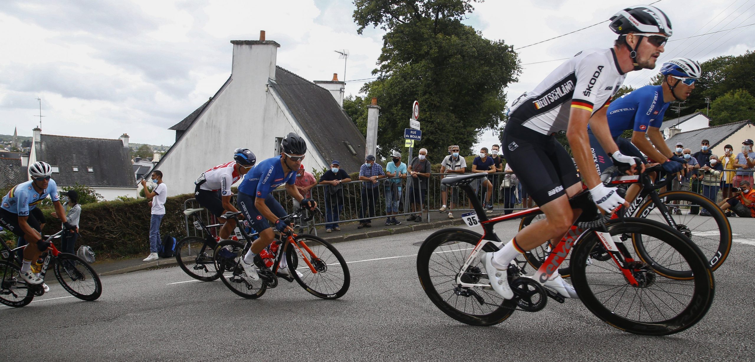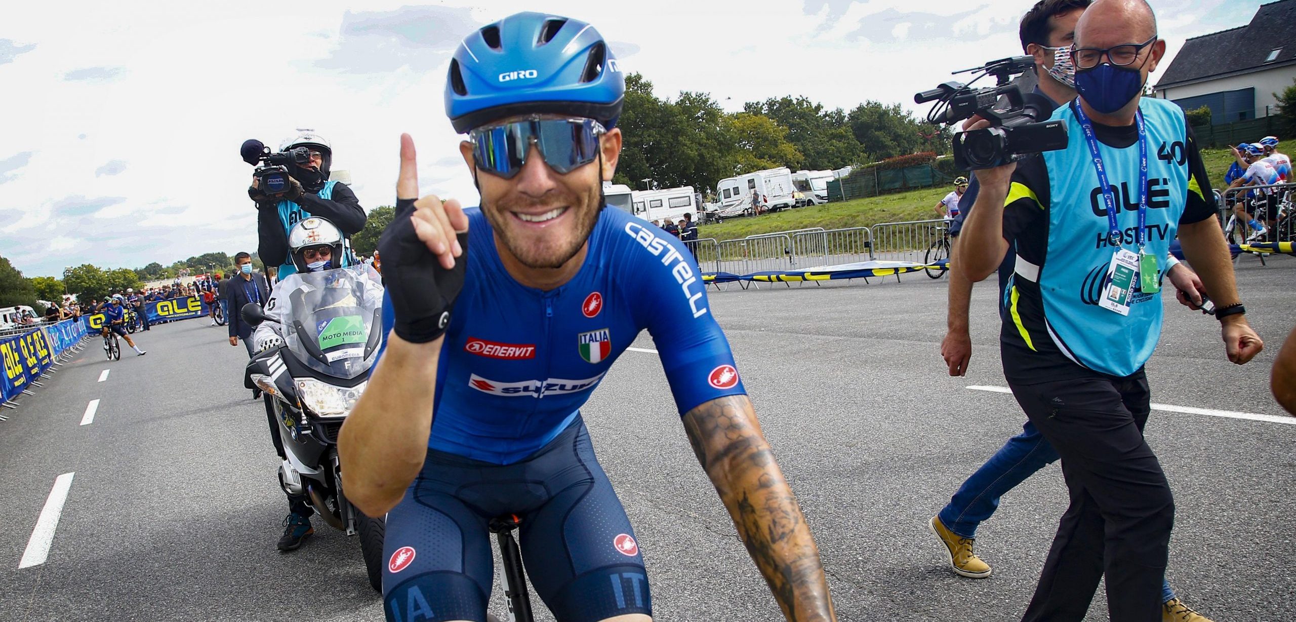 Giacomo Nizzolo is de nieuwe Europese kampioen wielrennen. In de eindspurt in Plouay drukte de Italiaan net iets eerder zijn wiel over de streep dan Arnaud Démare en Pascal Ackermann. Mathieu van der Poel werd vierde. Op de erelijst volgt Nizzolo zijn landgenoot Elia Viviani op, die vorig jaar beslag legde op de Europese titel.
