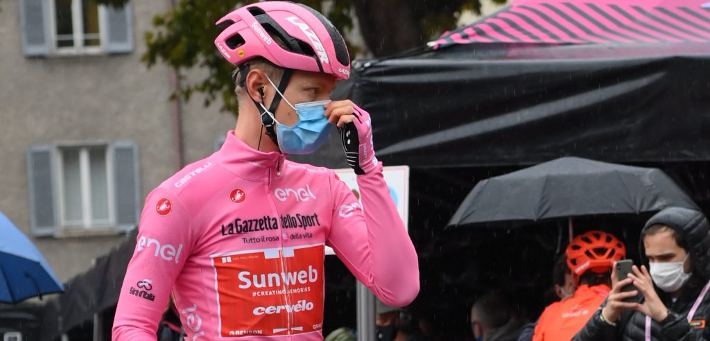 Voor de favorieten van de rit pakken we even de situatie in de top van het klassement erbij. Wilco Kelderman leidt met een minimale voorsprong op ploeggenoot Jai Hindley (12 seconden) en INEOS Grenadiers-kopman Tao Geoghegan Hart (15 seconden). Pello Bilbao is vierde op 1.19 minuut en João Almeida op 2.16 minuut. Daarachter is Jakob Fuglsang de nummer zes op vier minuten.