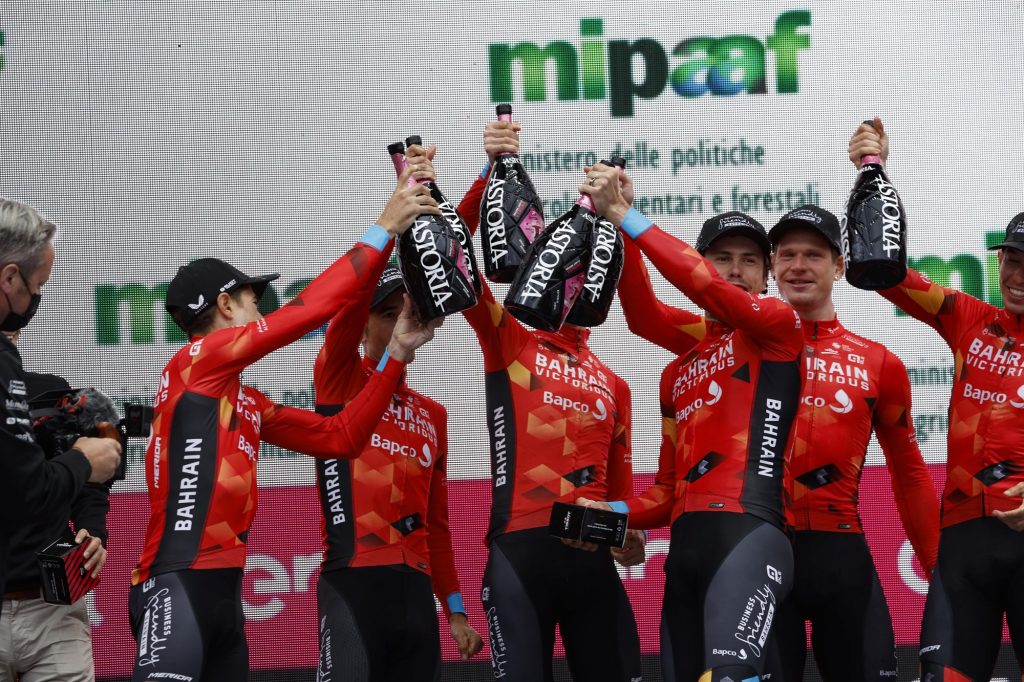 Bahrain Victorious viert winst in het ploegenklassement – foto: Cor Vos