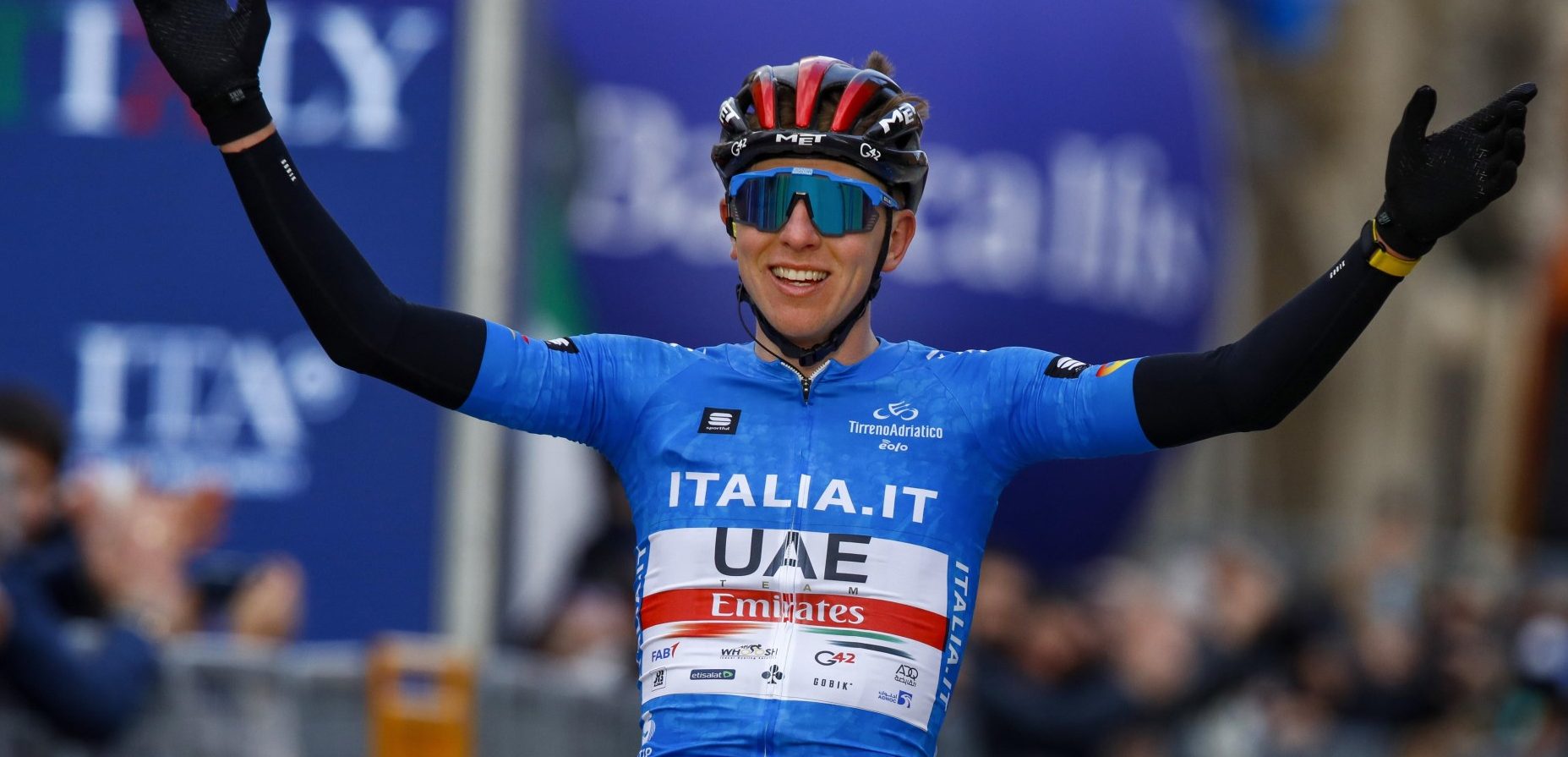 Tadej Pogačar droeg in Tirreno-Adriatico al meermaals een blauwe trui – foto: Cor Vos