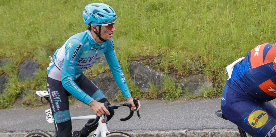 Attila Valter koerst in de Italiaanse kleuren, weliswaar een kwartslag gedraaid – foto: Bram Berkien/Visma | Lease a Bike