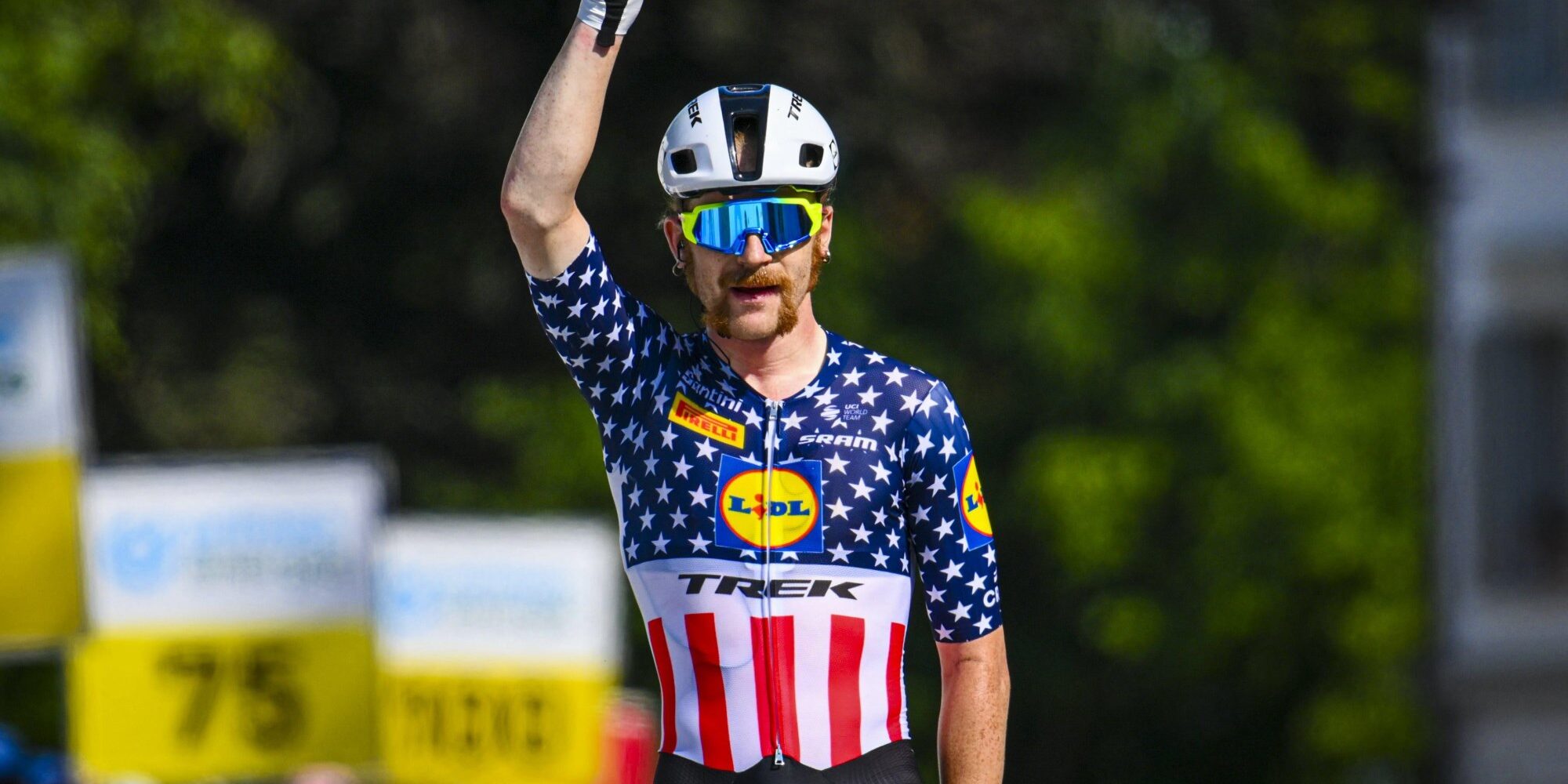 Quinn Simmons heeft nog maar eens laten zien dat hij ontzettend hard met de fiets kan rijden. De Amerikaans kampioen van Lidl-Trek maakte deel uit van een vroege vlucht, leek op een gegeven moment kansloos voor de overwinning, maar wist op imponerende wijze uit de greep te blijven van de groep der favorieten.