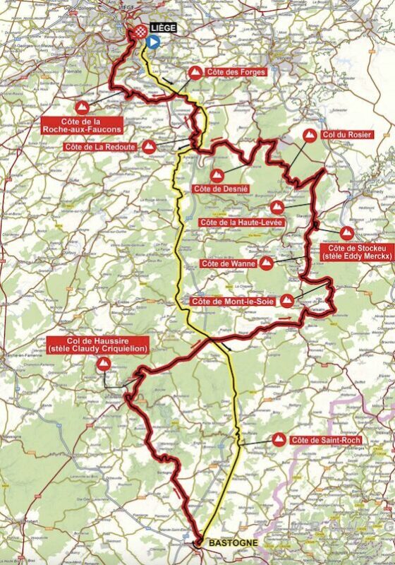 Luik-Bastenaken-Luik voor mannen begint dit jaar, wat had u gedacht, in Luik. Na een lange openingsfase komen de renners na een goede 150 kilometer in de zone van de waarheid. Dan volgen de beklimmingen elkaar zeer snel op. De echte finale start meestal op La Redoute, maar daarna staan ook nog de Côte des Forges en de Côte de la Roche-aux-Faucons op het menu. In totaal rijden de mannen 252 kilometer.