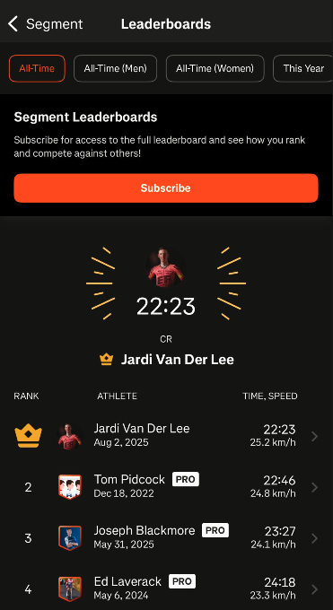 Jardi van der Lee pakt prestigieuze Strava-KOM af van Tom Pidcock